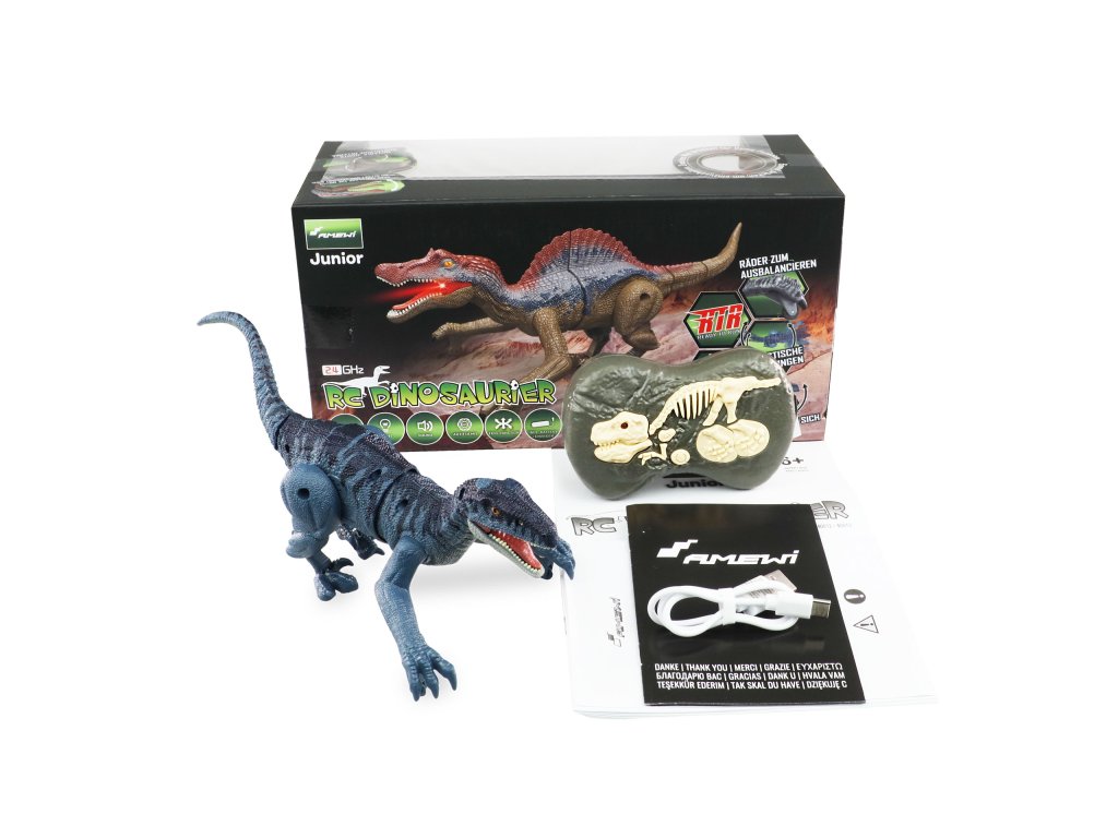 Ktoré dieťa by nemilovalo dinosaurami? No, a práve pre nich tu máme úžasného praještera na diaľkové ovládanie VELOCIAPTOR RC Dinosaurus. Krásne spracovaný, 21cm veľký, pohyblivý dinosaurus vie chodiť, vydáva rev a zvuky chôdze. Má veľmi jednoduché 2 tlačidlové ovládanie v tvare fosílie, vďaka ktorému je hračka vhodná aj pre tých najmenších už od 6 rokov. Charakteristické zuby, silné pazúry a detailná štruktúra šupín na svalnatom tele dodávajú tomuto vládcovi obdobia kriedy živý vzhľad. Navyše LED svetlo v ústach vytvára
