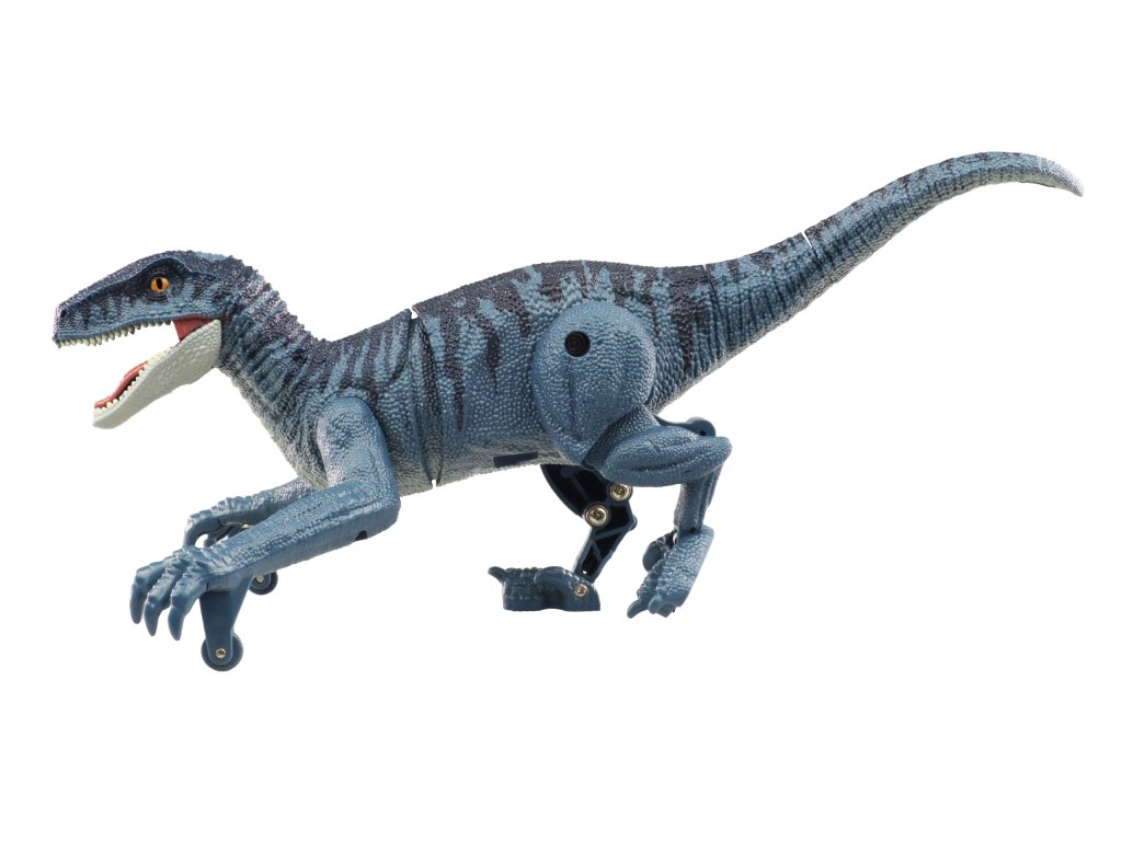 vzrušujúce efekt. Mini velociraptor sa pohybuje po zemi vo všetkých smeroch. Stlačením tlačidla dokáže tiež vydať desivý rev. Malé kolieska pod prednými nohami zaisťujú
