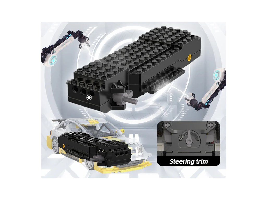 Zostavené auto urobí parádu nielen na vystaviteľovi, ale aj na závodnom okruhu. Pomocou diaľkového ovládania môžete ísť všetkými smermi rýchlosťou cca 5,7 km/h. Dosah diaľkového ovládania je 25 m. Potrebujete doň 2 x AAA batérie.