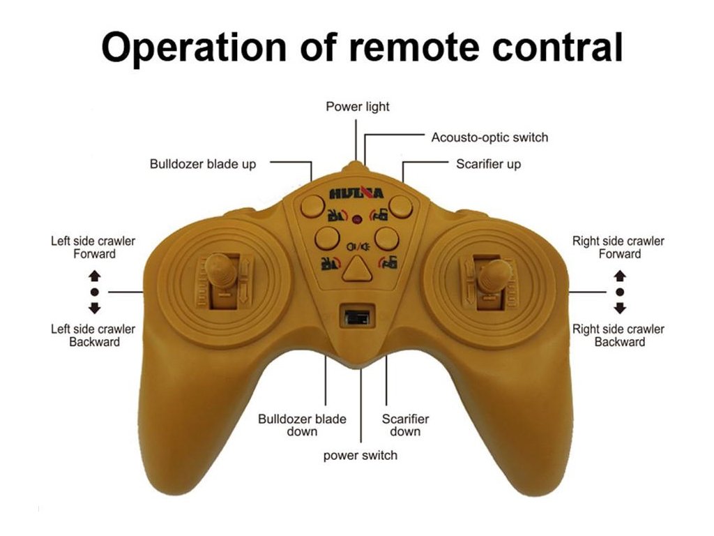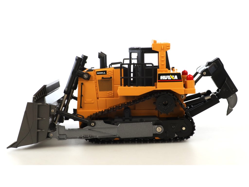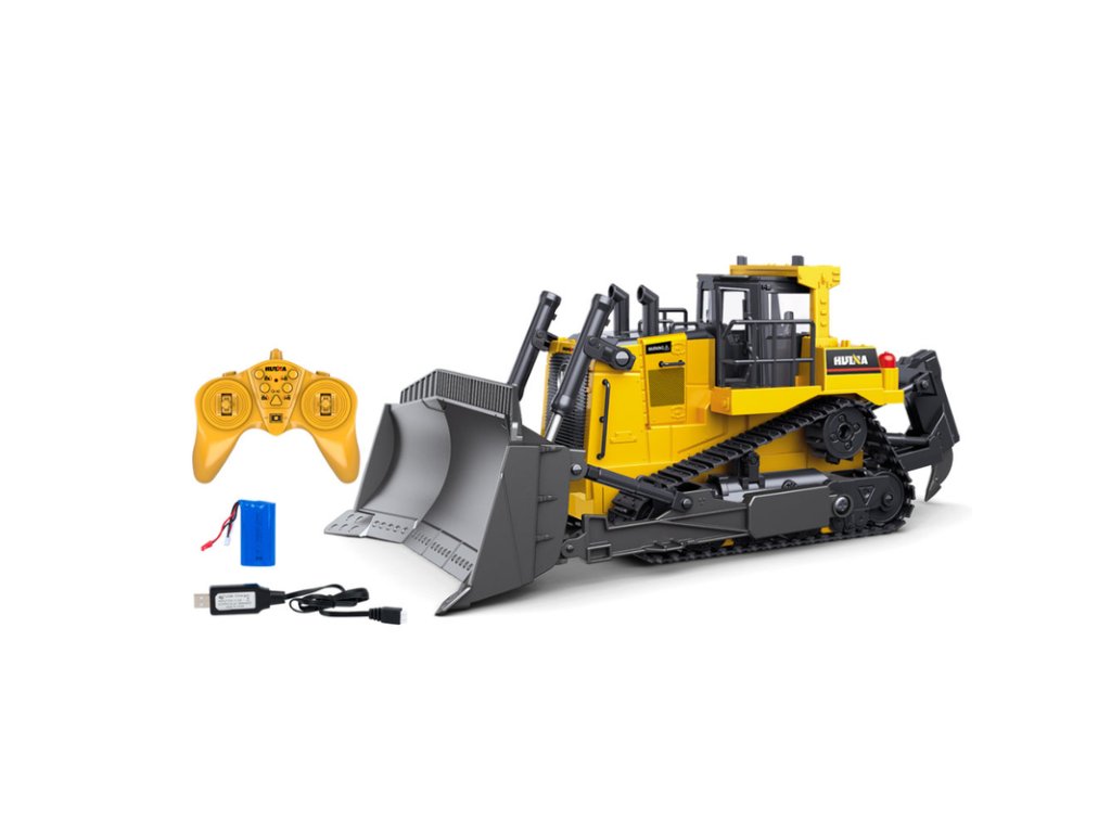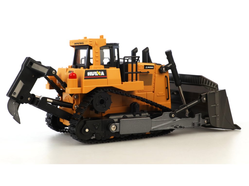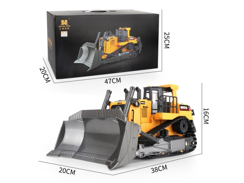 NÁDHERNE SPRACOVANÝ PÁSOVÝ BULDOZER 1:16, VÁS ZAUJME NIELEN SVOJIM SLUŠIVÝM DIZAJNOM, KVALITOU SPRACOVANIA, ALE TIEŽ MOŽNOSŤOU OVLÁDAŤ SPUSTU FUNKCIÍ VRÁTANE FUNKČNEJ.