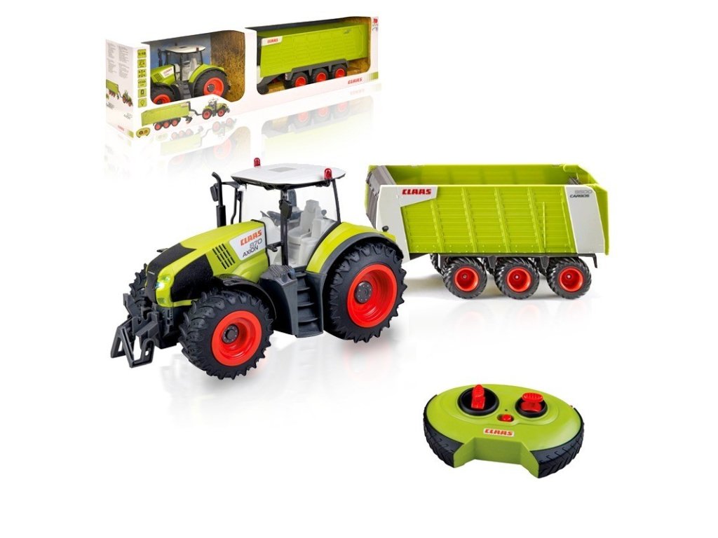 CLAAS AXION 870 s prívesom Cargos 9600 na diaľkové ovládanie