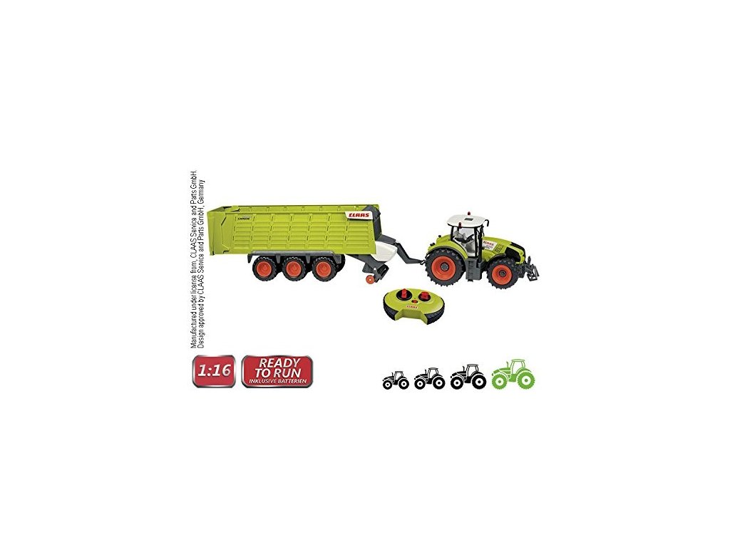 Presvedčivé sú často veci, ktoré nie je potrebné vysvetľovať. Sú to veci, ktoré nás presvedčia samy. A presne taká je nová výrobná rada AXION 870. Jedná sa o RC model traktora v mierke 1:16 + príves Cargos 9600 o celkovej dĺžke cez 1 meter! Model je vyrábaný pod licenciou CLAAS Service und Parts GmbH, je teda zaručená úplná vernosť prevedenia s dôrazom na najmenšie detaily. Model traktora je vybavený LED svetlometmi vpredu a LED koncovými svetlometmi vzadu. Tieto sú spínateľné z vysielača. K modelu je rad originálneho príslušenstva a tiež za neho možno pripojiť akýkoľvek vozík, rozmätač, apod. Z radu výrobkov Bruder v mierke 1:16.