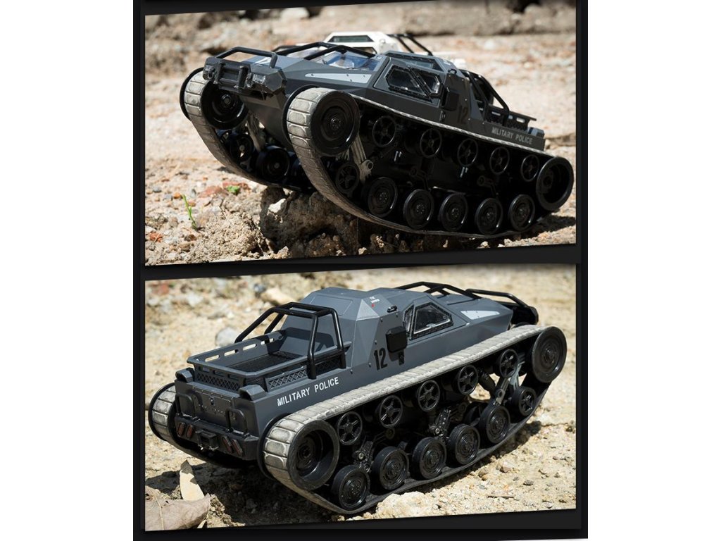 JE TU FUTURISTICKÝ, RÝCHLY A BITELNÝ PÁSOVÝ MILITARY POLICE CRAWLER 1:12. Neprekonateľné JAZDNÉ VLASTNOSTI AJ V TOM najextrémnejším TERÉNYM NIELEN VĎAKA DVOJITeJ Plantovej PREVODOVKE, KOVOVÝM NAPÍNÁKOM PÁSOV, a maximálnou rýchlosťou až 12 KM / H.