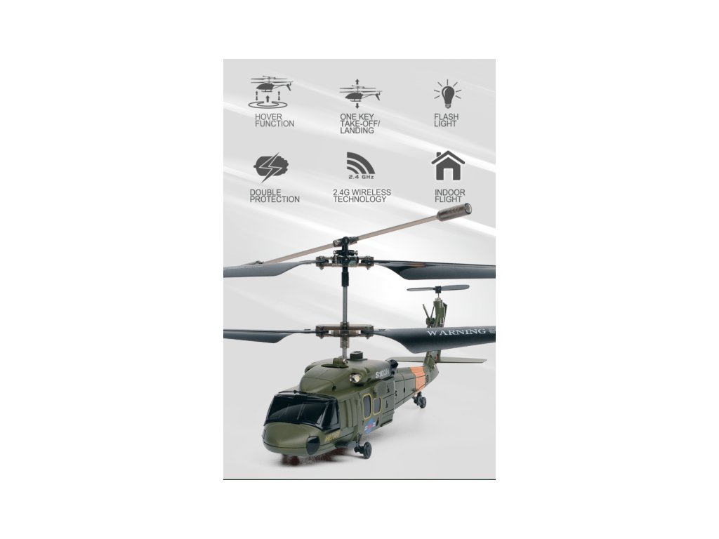 Firma Syma prišla s novinkou legendárneho vojenského vrtuľníka na diaľkové ovládanie Blackhawk. Jedná sa o menší RC vrtuľník s barometrom, ktorý je ideálny pre začiatočníkov vďaka svojmu jednoduchému ovládaniu a stabilnému letu. Každý detail je starostlivo spracovaný, nádherný dizajn nadchne kadejakého nadšenca do vojenskej techniky.