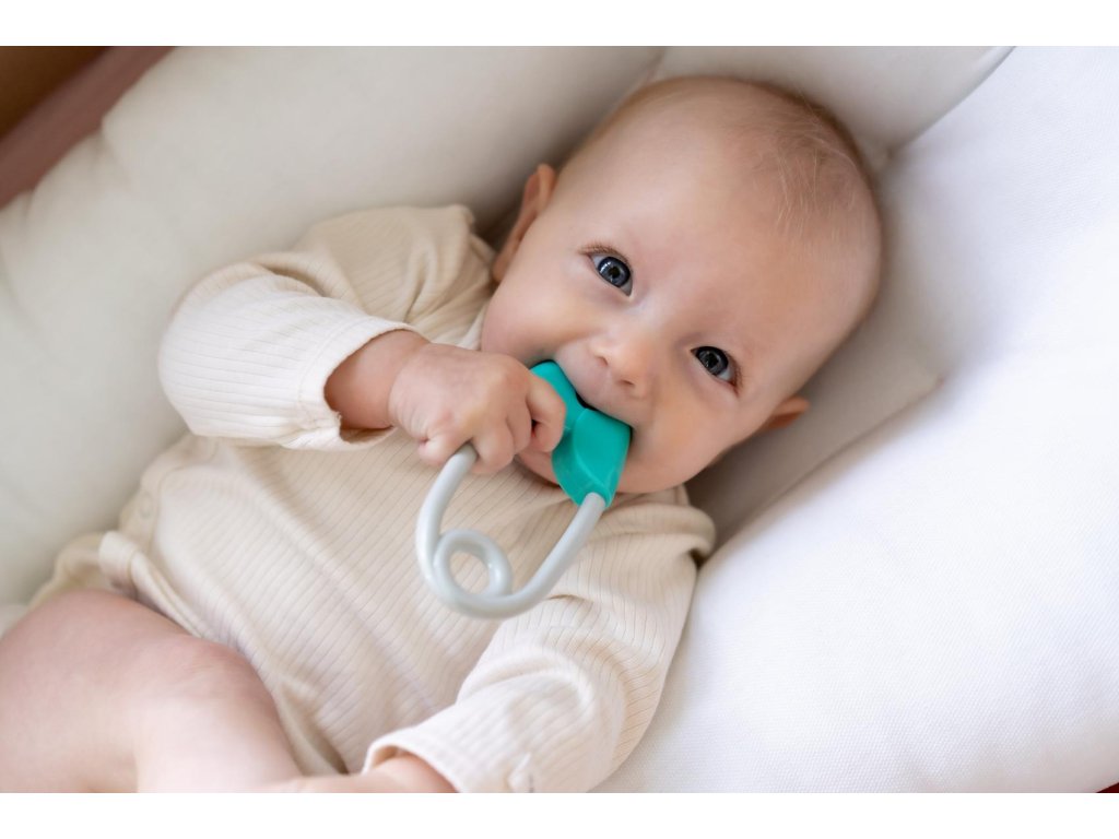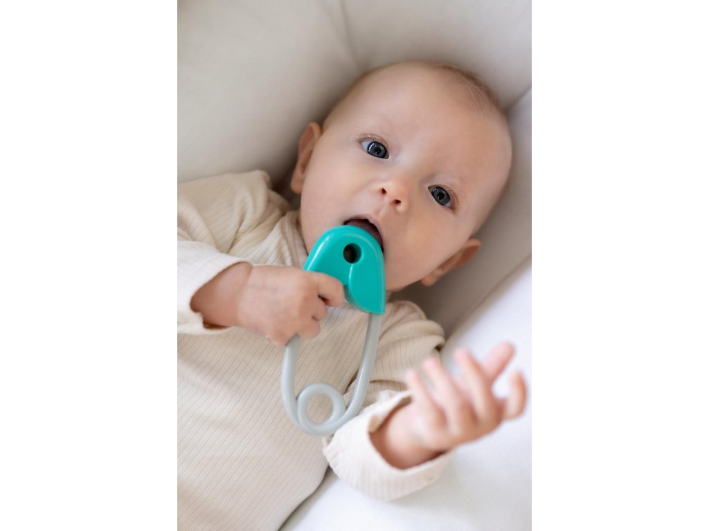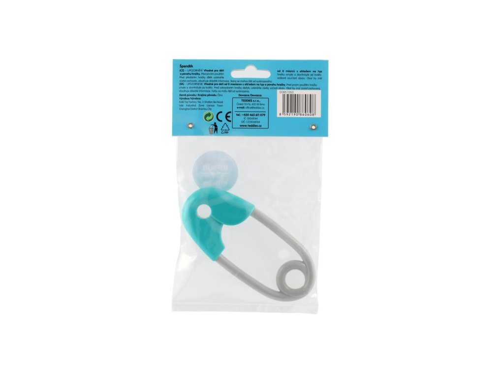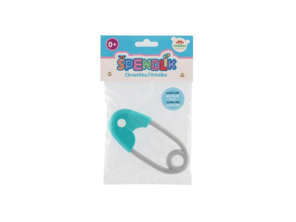 Hrkálka špendlík plast 12cm tyrkysovošedé 12x19cm v sáčku 0+