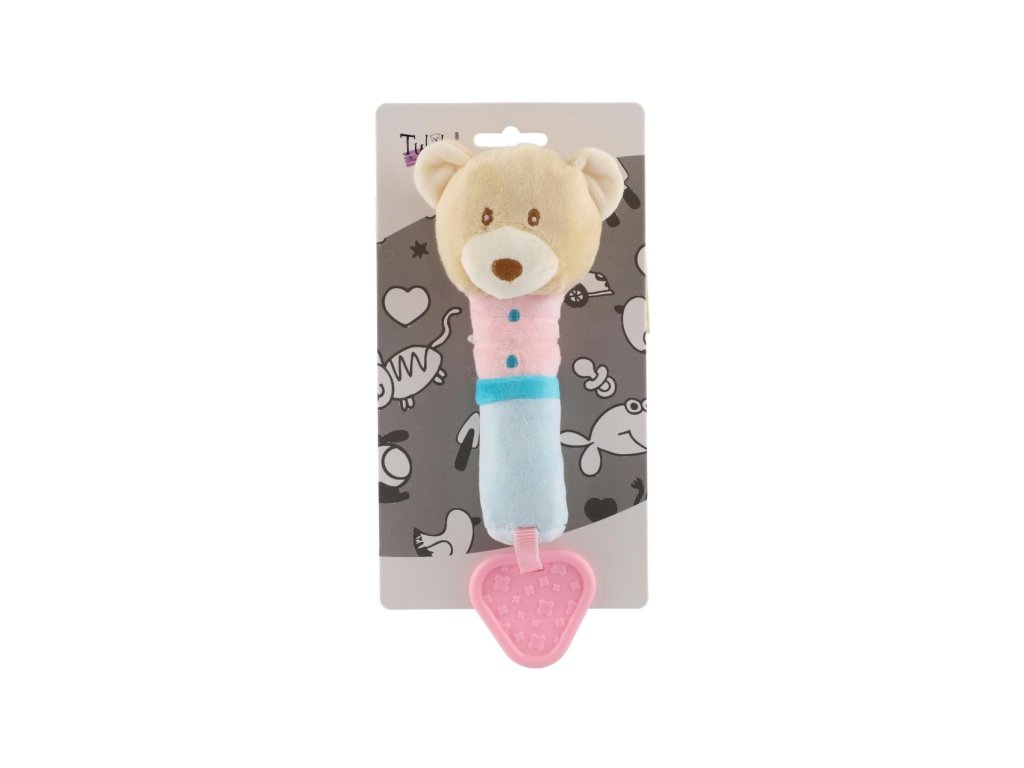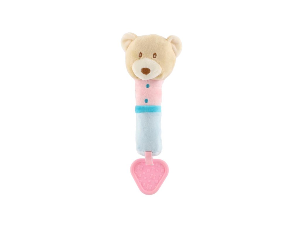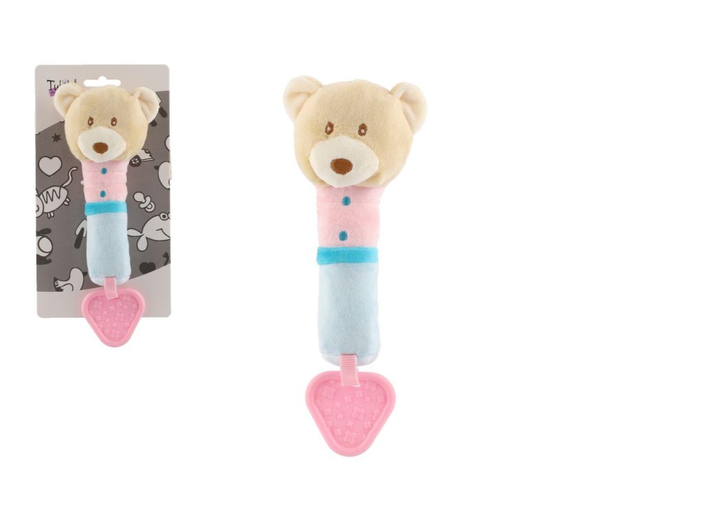 Pískátko/hryzátko medveď plyš 23cm béžové na karte v sáčku 0+
