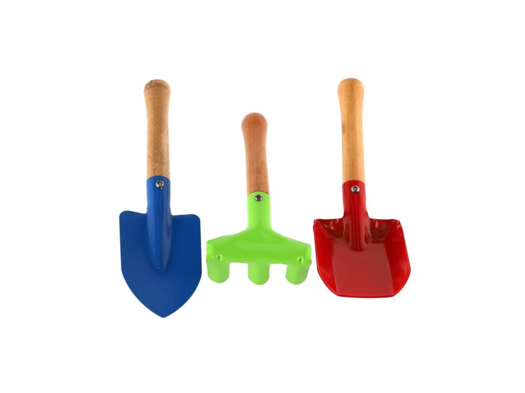 Záhradné náradie pre deti urobí z práce na záhrade zábavu, pomáha rozvíjať motoriku a motivuje deti na pobyt na čerstvom vzduchu. Pomôžte v nich rozvinúť vzťah k práci a prírode. Náradie záhradné kovové krtko 3 ks. Súčasťou kovová lopatka, hrable, rýľ. Drevené držadlo.