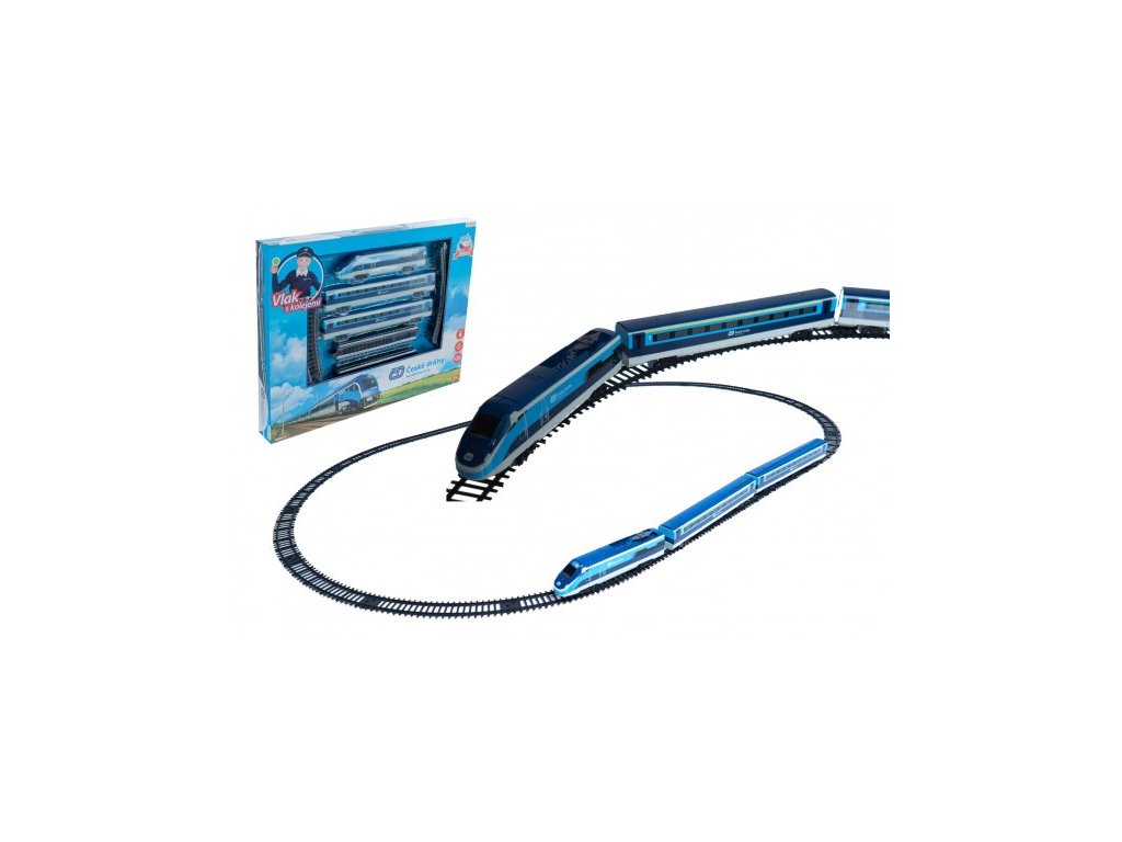 Sada vlak České dráhy s koľajami 23ks na batérie so zvukom sa svetlom v krabici 55x43x5cm