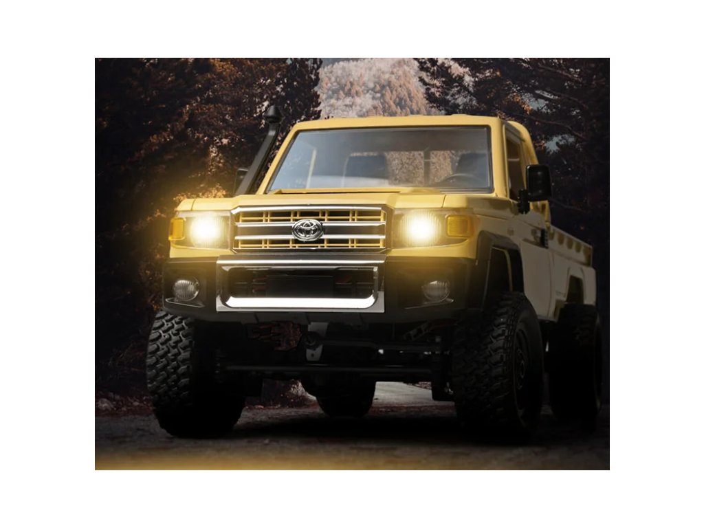 Veľmi precízne spracovaný model na diaľkové ovládanie je pick-up licencovaný firmou Toyota. Vyrobený je z kvalitného a odolného plastu. Dizajn je vyladený do posledného detailu vrátane interiéru kabíny. Auto s korbou môžete využiť na pomalú jazdu terénom alebo prevážanie materiálu či plyšových kamarátov. Zadná strana korby sa dá ručne sklopiť na uľahčenie vykládky.