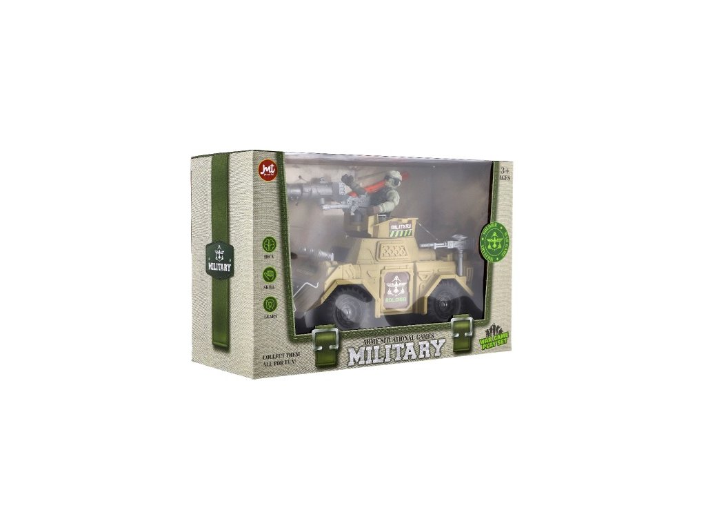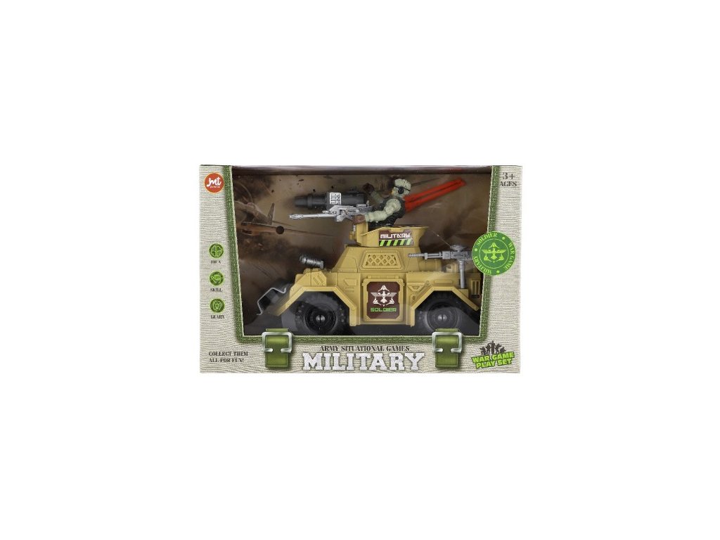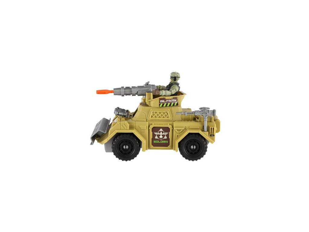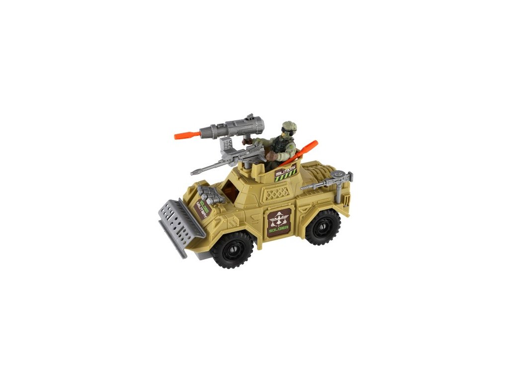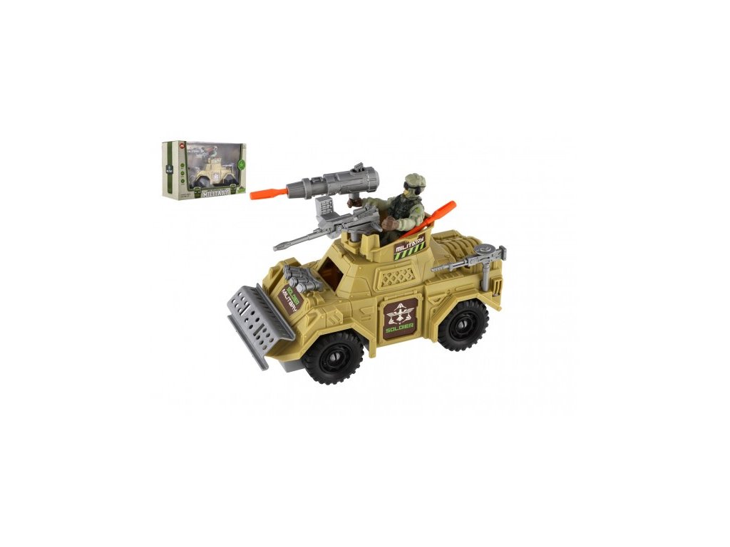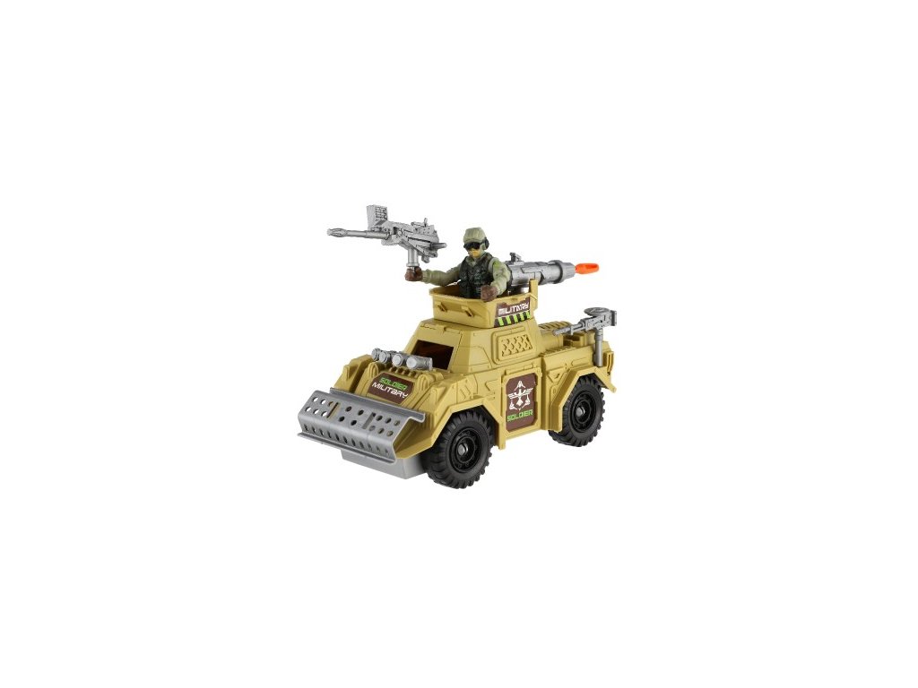 Vojenská sada obrnené auto + vojak s doplnkami plast na voľný chod