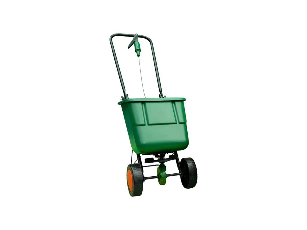 Nádoba s objemom 12 litrov a rozptyl až 3 metre robia z tohto vozíka vhodného kandidáta aj pre väčšie trávnaté plochy. Aplikátor je plne nastaviteľný podľa typu použitého produktu, takže ho môžete využiť nielen na hnojivo, ale aj na výsev osiva.